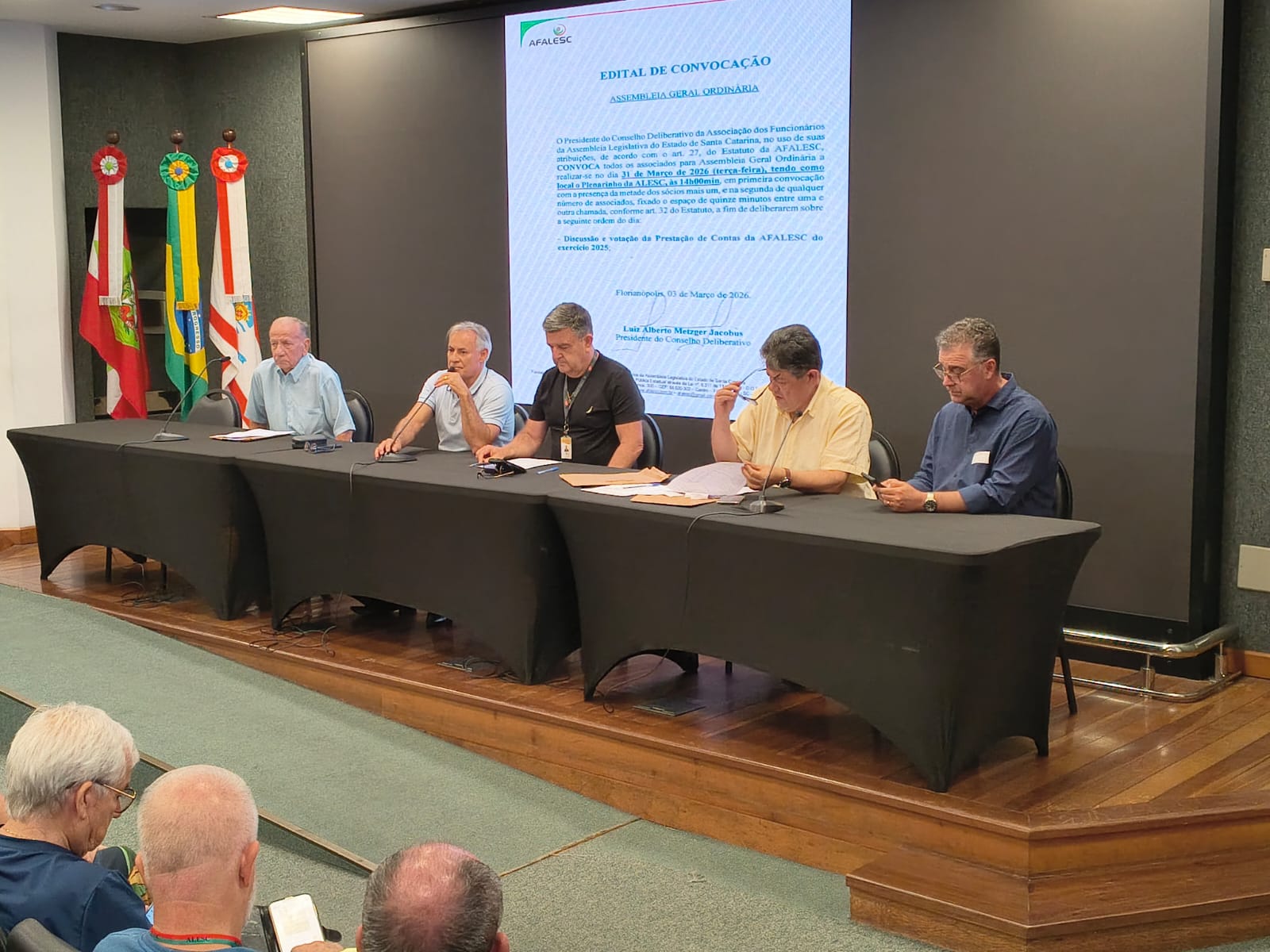 01 abr FOTOS DA ASSEMBLEIA GERAL DA PRESTAÇÃO DE CONTAS DA AFALESC 2026 Posted at 13:32h in Notícias by Afalesc 0 Comments 0 Likes Share Fotos da Assembleia Geral da prestação de contas da AFALESC, dia 31/03/2026.